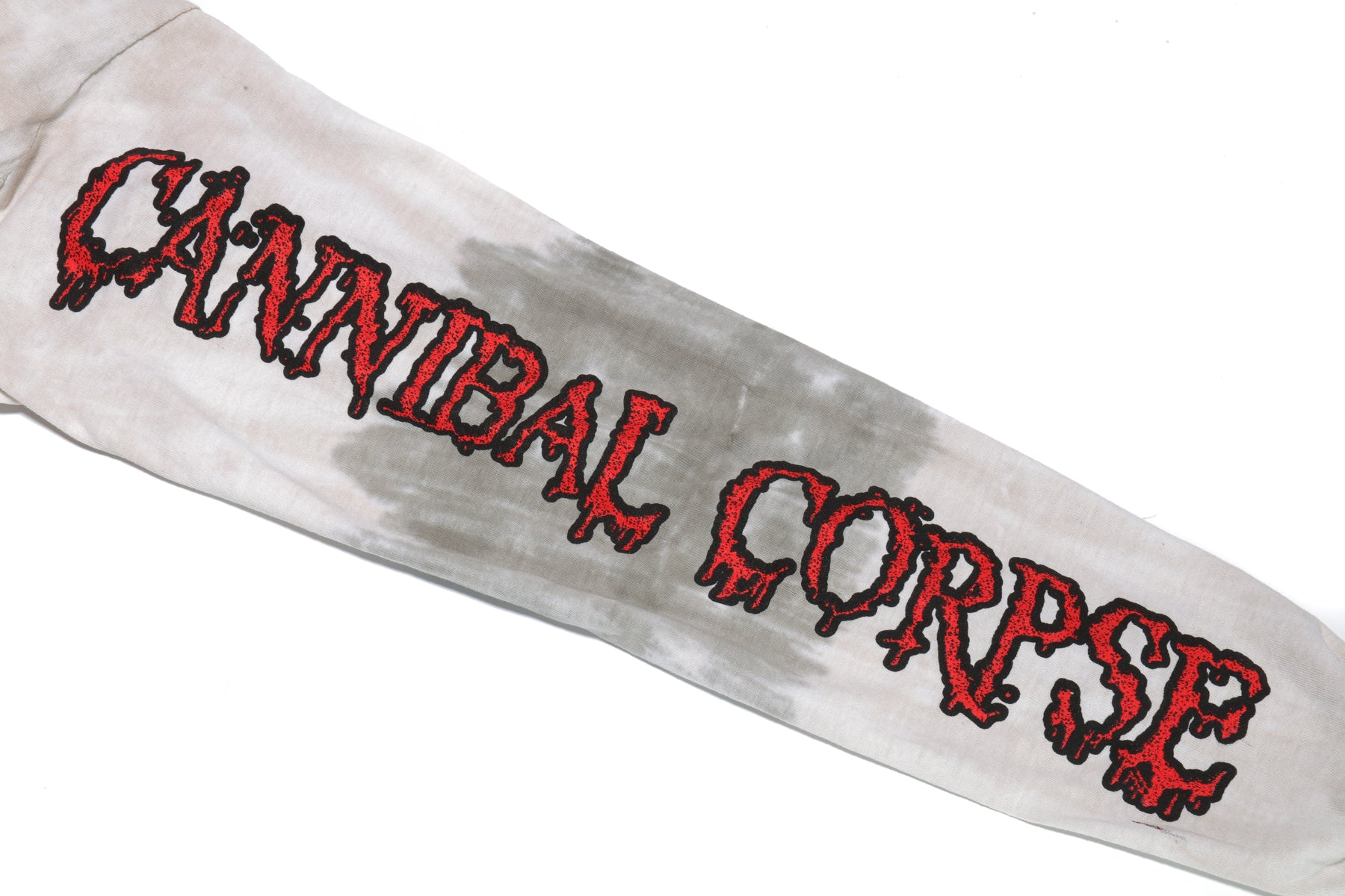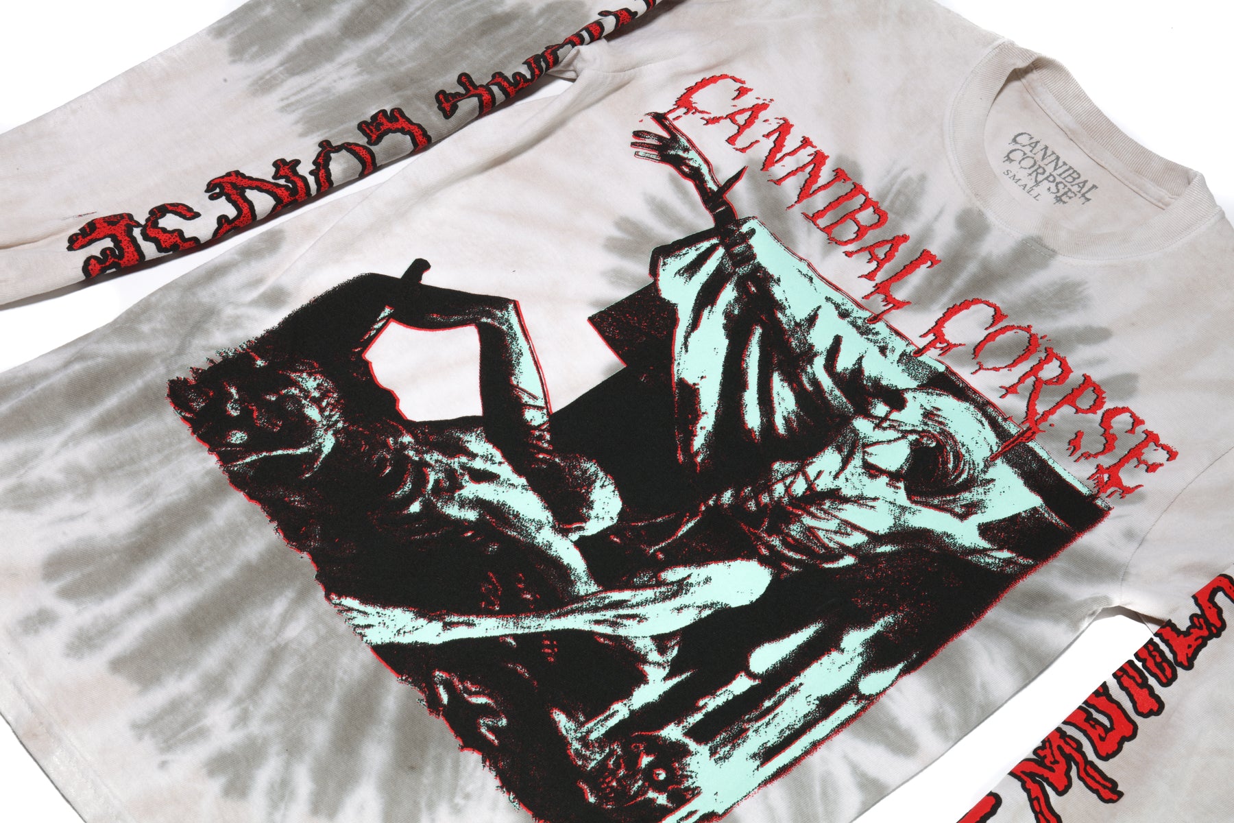 The Cannibal Corpse Tomb Of The Mutilated design, printed on a comfortable, standard-fitting faded beige dyed long sleeve shirt.